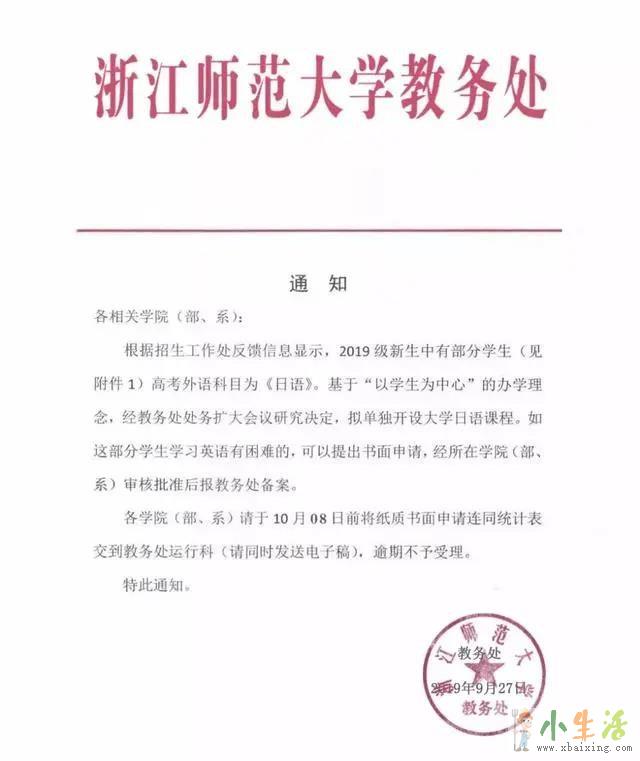 比如浙江一所本科院校:浙江师范大学原文www.xbaixing.com。其教务处就曾发布了为了适应日语高考生在大学的学习,拟单独开设日语课程的通知。