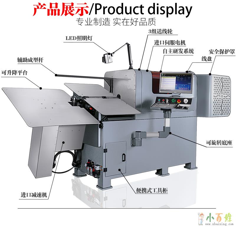、由精密伺服电机驱动,用专业线成型机电脑系统控制各个驱动器执行各步成型,原文www.xbaixing.com
