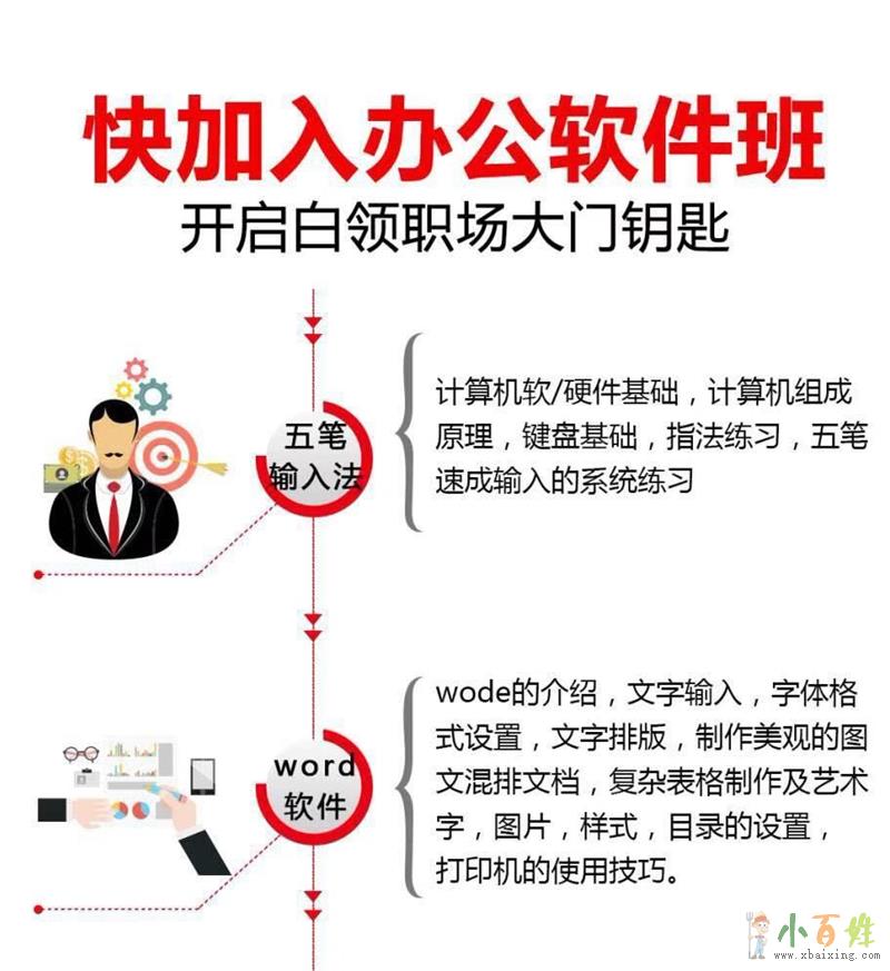 【电脑办公全能班】学习课程:电脑基础、五笔打字、OFFICE办公软件(Windows、Word、Excel、PPT)、适宜对象:无电脑基础者以及希望夯实计算机操作基础者课程简介:该班包含了现代化办公所...