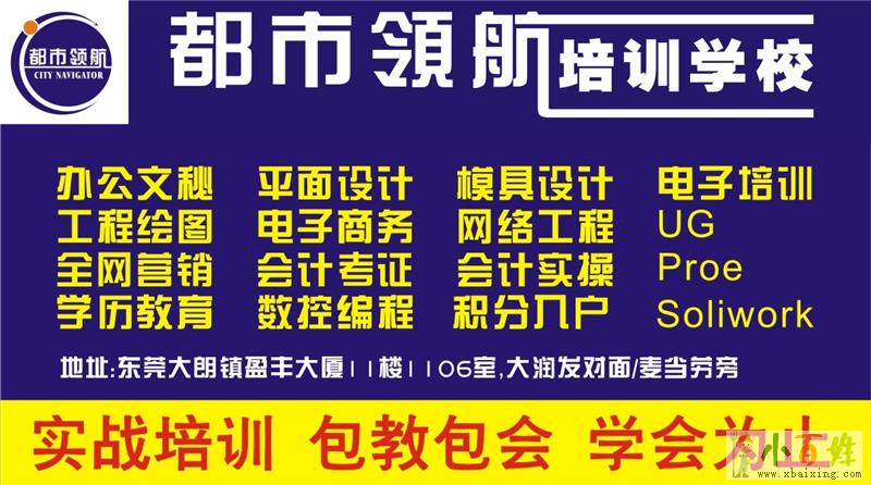 东莞大朗都市领航职业培训学校专业零基础入学,随到随学,小班面授授课,学会为止,毕业推荐高薪就业,两年内享免费返修课程!