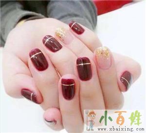 酒红色美甲